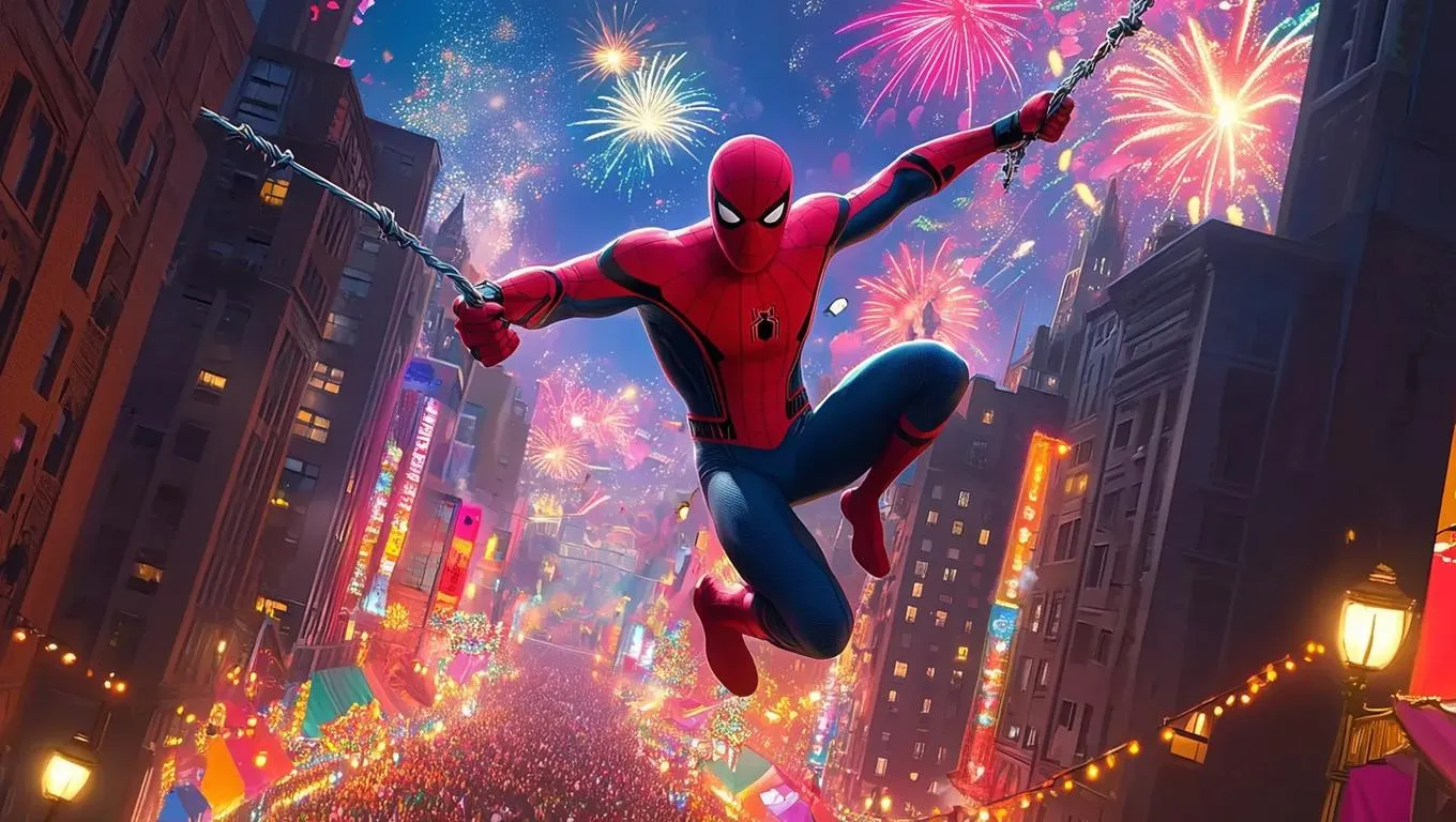 Watch Spider-Man swing through a vibrant festival cityscape with dazzling fireworks lighting up the sky. Create this dynamic, action-packed scene with vivago.ai's AI image generator—transform text prompts into stunning superhero visuals bursting with celebratory energy.