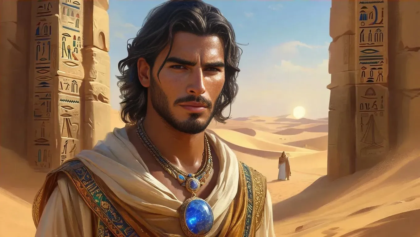 Generate a striking AI image of a young, athletic man in 19th-century Arabian attire holding a mystical sundial-engraved book with blue agate clasps. Set in a desert near a time portal, blending historical charm and cosmic symbolism. Perfect for fantasy storytelling, book covers, or conceptual art with AI-powered precision.