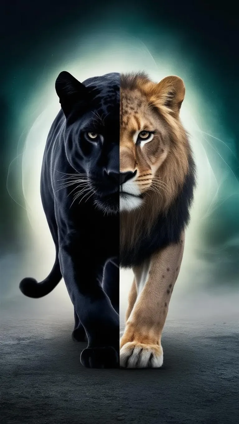 Generate a stunning AI image of a half-black panther, half-lion hybrid walking seamlessly as one mythical creature. Ultra HD detail brings this otherworldly fusion to life, blending sleek panther elegance with lion majesty. Perfect for fantasy art, digital creators, and surreal visuals. Powered by VivaGo.ai’s advanced AI tools for professional-grade, high-resolution imaginative content.
