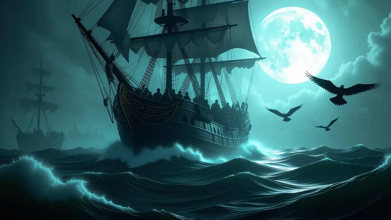 Create haunting maritime visuals with Vivago.ai's AI tools. Transform eerie sea-themed prompts into dark fantasy art and videos. Generate professional-grade, mythological imagery of cruel seas, spectral ghouls, and regal undersea monarchs using AI effects for captivating, chilling narratives.
