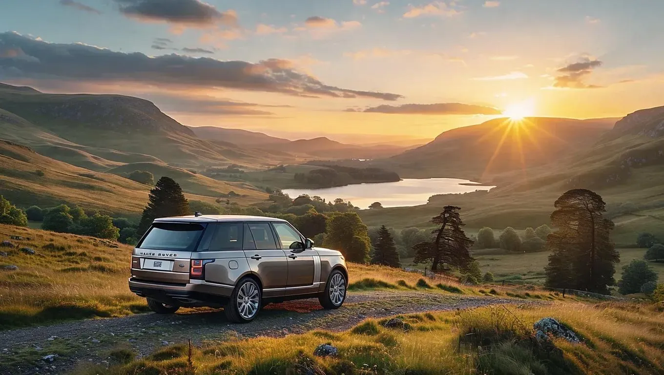 Generate stunning AI visuals of a luxury Range Rover navigating scenic landscapes in dramatic afternoon dark lighting. Powered by vivago.ai, create professional-grade AI images/videos with curated effects and advanced editing tools for captivating automotive content.