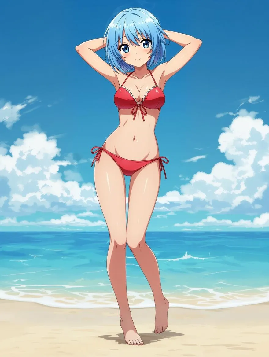 Generate striking anime-style beach scenes with Vivago.ai's AI art tools. Create cool-toned, full-body images of fierce short-haired characters in bikinis. Transform text prompts into dynamic anime visuals effortlessly. Explore advanced AI effects for professional editing and lifelike details. Perfect for manga-inspired storytelling. Download high-res instantly.
