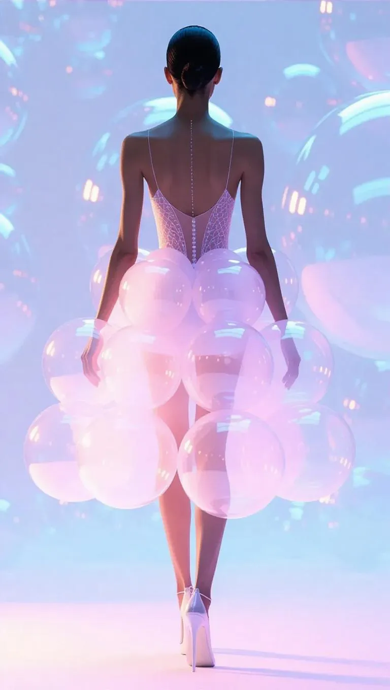 Create avant-garde AI fashion designs with inflatable bubble structures, 3D volumes, and pastel sheer fabrics. Vivago.ai transforms text prompts into high-fashion visuals featuring ethereal floating effects, volumetric lighting, and minimalist backgrounds for professional-grade AI-generated avant-garde clothing concepts.