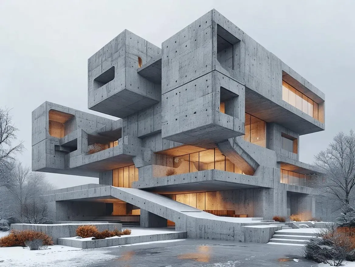 Create striking brutalist architecture school designs with AI. Generate cold, fortress-like concrete structures, bold geometric forms, and raw textures. Perfect for architectural visualization, concept art, or academic projects. Transform text prompts into imposing brutalist visuals with professional-grade AI tools.