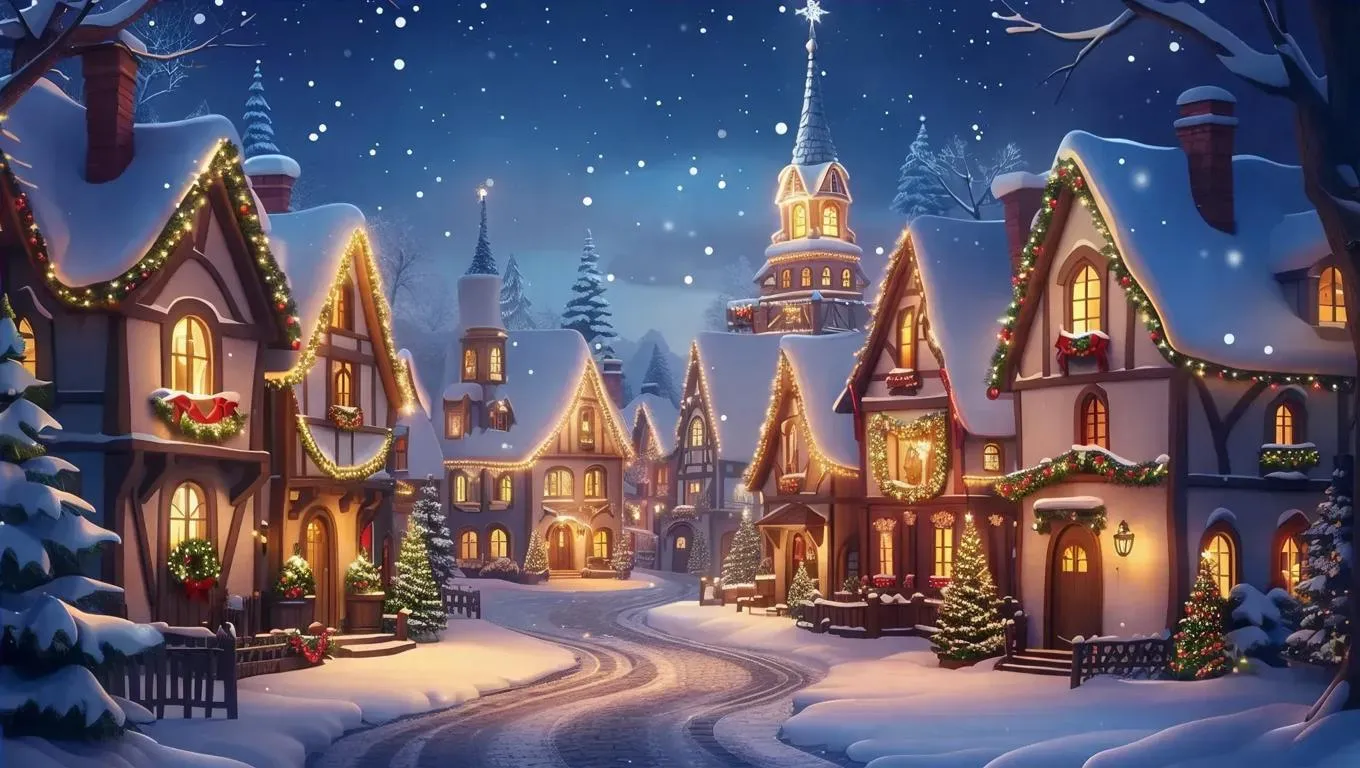 Transform your vision into a magical winter wonderland with Vivago.ai's AI image generator! Create a charming cartoon-style Christmas village scene with twinkling lights, festive décor, and snowy charm. Ideal for holiday cards, social media, or storytelling. Generate whimsical AI art capturing winter magic in one click.