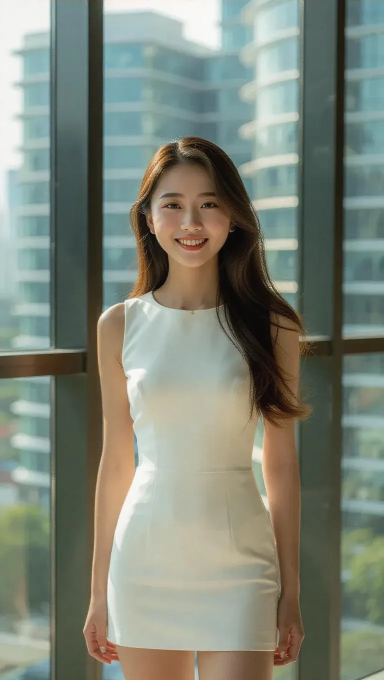 Create a stunning AI-generated image of a Vietnamese teen in a white dress at an office. VivaGO.ai blends Morandi Color's muted elegance with hyper-realistic details for professional visuals. Transform prompts into lifelike art with curated AI effects for images, videos, and editing.
