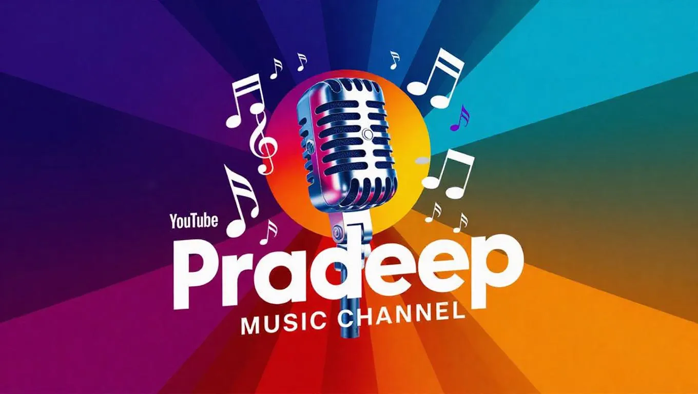 Design a vibrant, AI-generated YouTube banner for Pradeep Music Channel with music notes, instruments, and modern templates. Create eye-catching, high-resolution visuals to attract subscribers and enhance brand identity. Effortlessly craft professional channel art using AI tools for a dynamic, engaging music content platform.