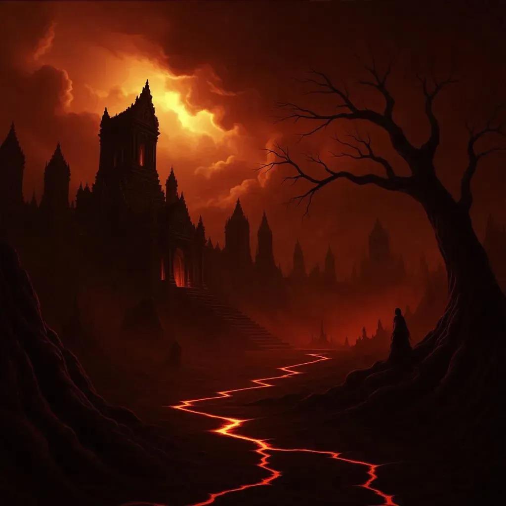 Generate haunting cursed grounds visuals of Karanak with AI-powered dark-red, maroon, and brown-red palettes. Vivago.ai transforms text prompts into eerie dark fantasy art, offering professional AI effects and rich color schemes for striking, otherworldly imagery in seconds. Create blood-chilling scenes effortlessly.
