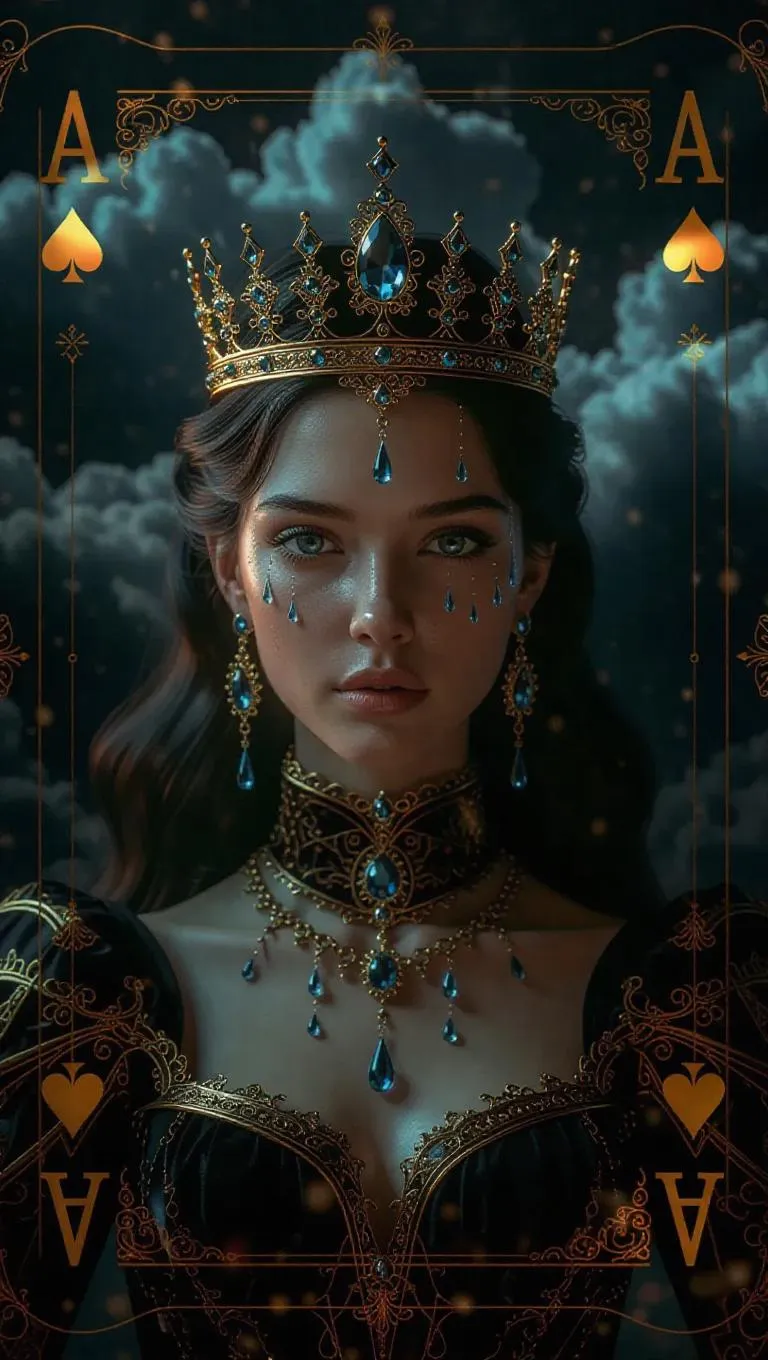 Create a captivating 3D fantasy queen game card with AI-generated clouds, tears transforming into rain effects, and dynamic dimensional details. Elevate your TCG, RPG, or collectible designs with this high-resolution, customizable AI artwork for immersive storytelling and professional-grade visuals.