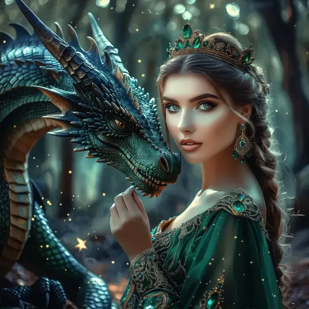 Create mesmerizing AI-generated visuals of a mystical dragon companion with vivago.ai. Transform "beautiful girl with dragon" prompts into fantasy art using advanced AI image tools, blending ethereal beauty and mythical creatures for captivating digital storytelling or professional creative projects.