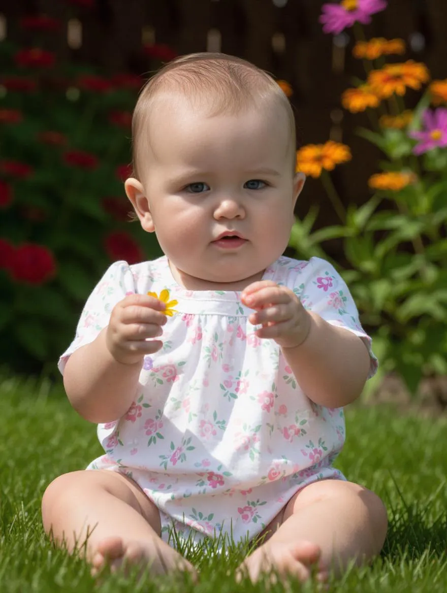 Create enchanting AI-generated visuals of a joyful baby exploring a blooming garden with vivago.ai. Transform text prompts into vibrant scenes filled with colorful flowers and playful moments. Craft lifelike, whimsical content using professional AI effects and editing tools for heartwarming, captivating imagery.