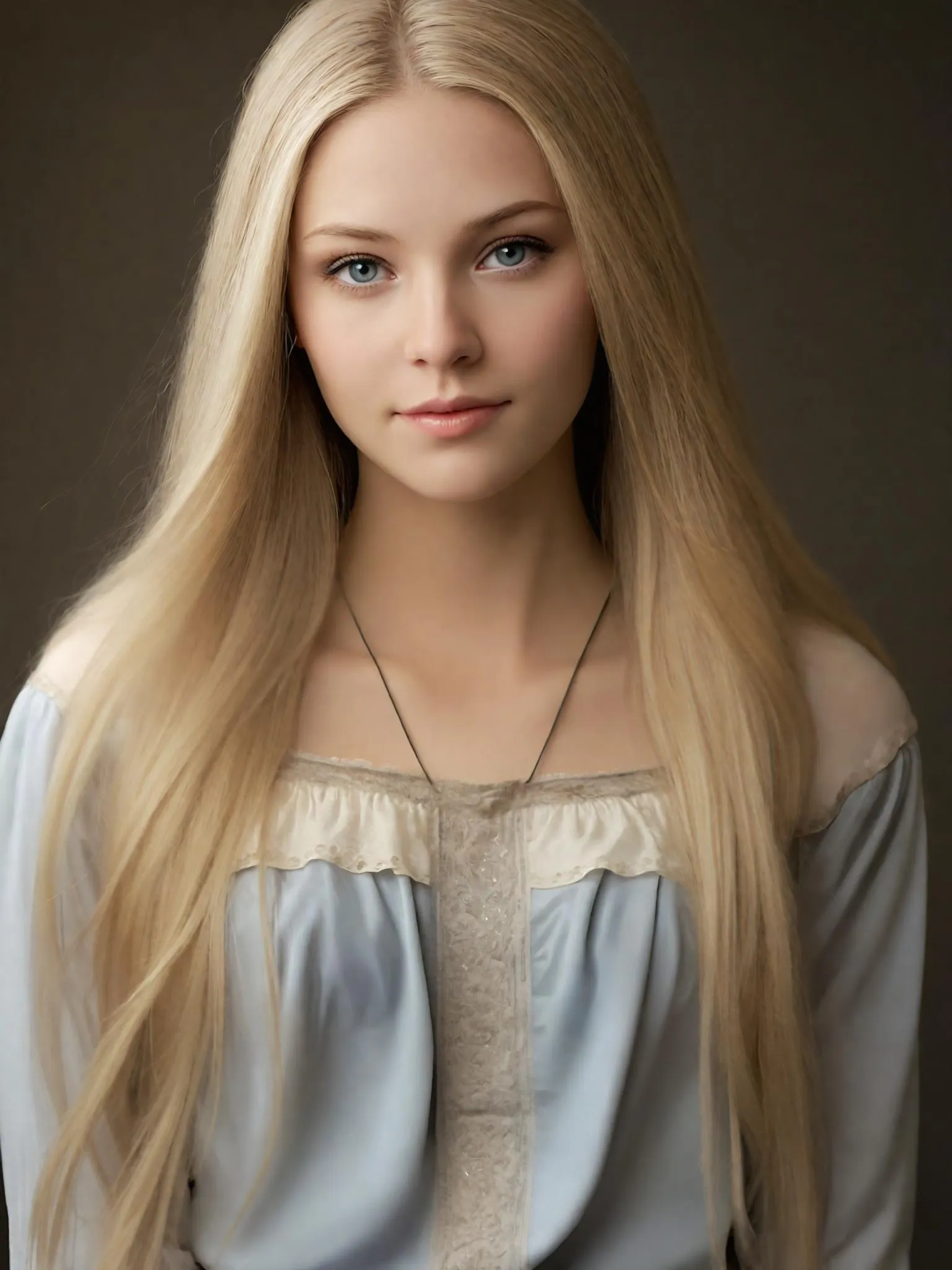 Hyper-realistic AI image of an 18-year-old Swedish woman: tall, slender with long light gold hair and piercing blue eyes. Fair-skinned, wearing a peasant top and jeans. Captures her intelligent, slightly bossy demeanor while studying law books. AI-generated portrait by vivago.ai for creative visions and professional results.