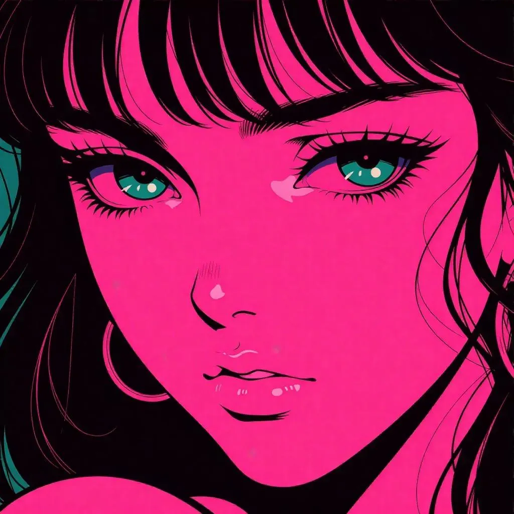 Create a striking AI-generated anime wallpaper with neo-pop art style, blending dark emerald and pink hues. Capture 1980s anime aesthetics through whippash curves, directed poses, and sensitive stillness. Transform text prompts into timeless, emotionally charged visuals featuring exquisite faces and down-shot angles, optimized for professional-grade anime backgrounds using advanced Niji 5 technology.