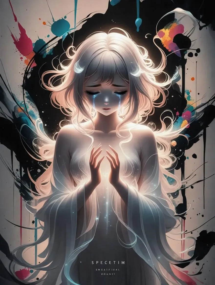 Mycelium AI effect crafts anime-inspired spectral figures with ethereal glow, translucent details, and wispy hair. Abstract ink-painted backdrops blend fluid brushstrokes and vibrant splashes, amplifying emotional depth. Transform prompts into mesmerizing AI-generated artwork using vivago.ai's tools for professional-grade, emotionally rich anime visuals.