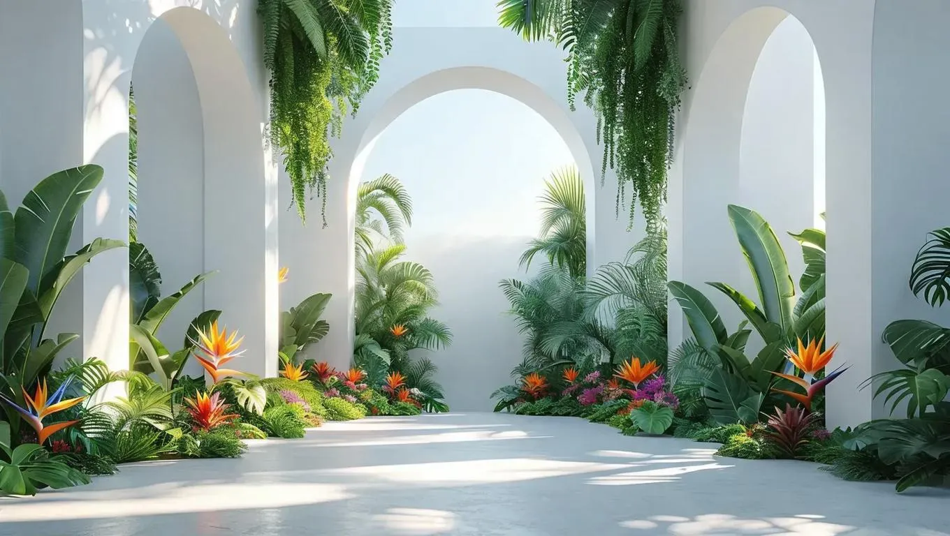 Create stunning AI-generated jungle scenes with VivaGo.ai. Blend lush foliage, vibrant flowers, and geometric white frames for dynamic contrast. Perfect harmony of organic patterns and clean edges—transform prompts into professional visuals with AI image tools. Elevate nature-inspired art effortlessly.
