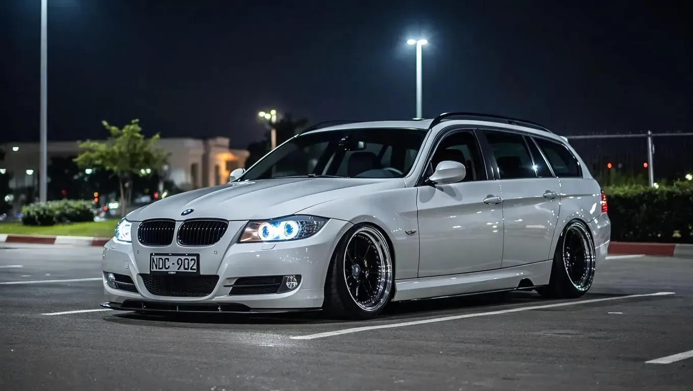Transform your vision into reality with Vivago.ai's AI image generator. Create stunning visuals of a white BMW E91 2011 Touring with NDC:902 license plate, BBS dark wheels, and a sleek nighttime parking lot scene. Elevate your projects with professional-grade AI tools for dynamic, realistic automotive imagery.