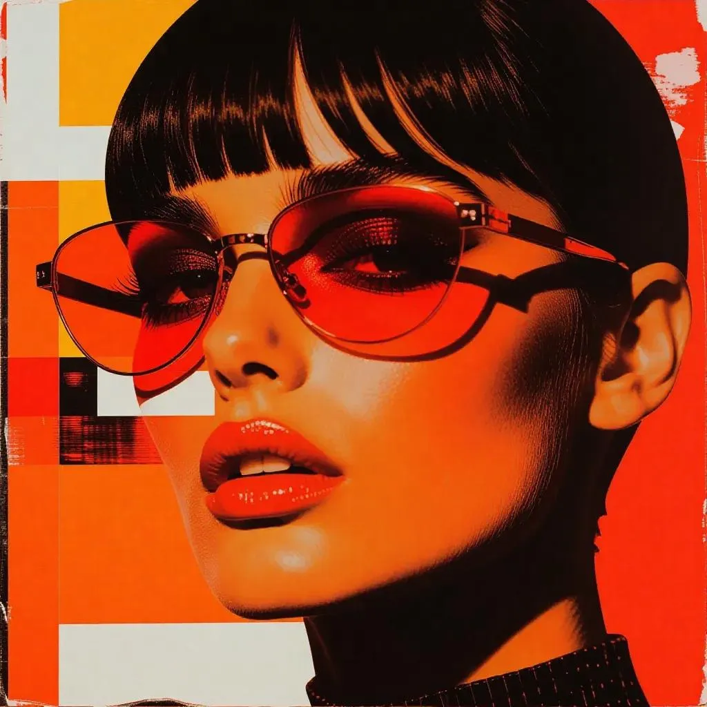 punk collage art style, Tyrra with red orange red-orange color palette