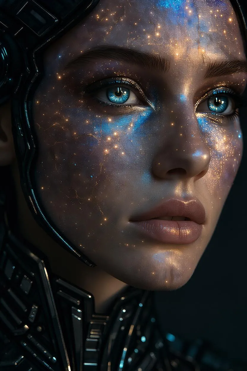 Explore AI-generated sci-fi fashion with this ultra-high fidelity Energycore Alderaan portrait—ethereal beauty meets surreal haute couture. Witness iridescent skin textures, fractal energy veins, and nebula-reflective chrome filigree. Galactic eyes and crystalline details showcase cinematic worldbuilding powered by Vivago.ai's AI artistry—perfect for creators seeking photorealistic fantasy visuals, cosmic effects, and next-gen digital fashion innovation.