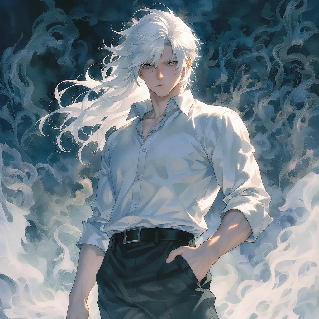 Generate stunning AI art of Gojo Satoru from Jujutsu Kaisen with dynamic angles, SakimiChan-inspired mastery, and Fu Baoshi's alcohol ink textures. Experience 8K fantasy visuals, cinematic rim lighting, and Akutami Gege's iconic character in full-body glory. Perfect for fans seeking AI-powered anime art with vivid, high-quality, and holy cinematic effects.