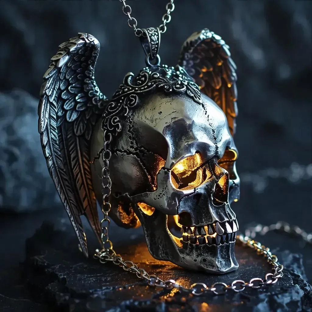 Create striking gothic jewelry designs with AI-powered visuals. Transform dark, fallen angel skull motifs into edgy pendants and chains. Perfect for brands seeking hauntingly elegant, professional-grade accessories. Explore AI-generated dark aesthetics for unique, high-contrast metalwork that captivates with macabre beauty and symbolic depth. Ideal for luxury dark fashion collections.