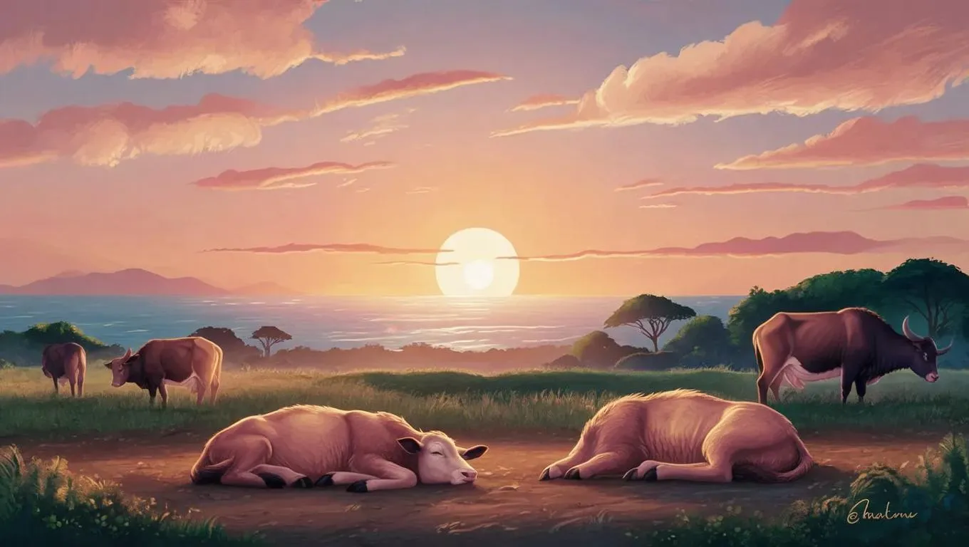 Transform text into stunning 3D animations with this Pixar-style cartoon sunset scene. Featuring vivid orange-pink skies, peaceful nature, resting animals, and serene environments, our AI-generated art brings tranquility to life. Perfect for storytelling, digital projects, or wallpapers. Explore creative tools for professional-grade visuals.