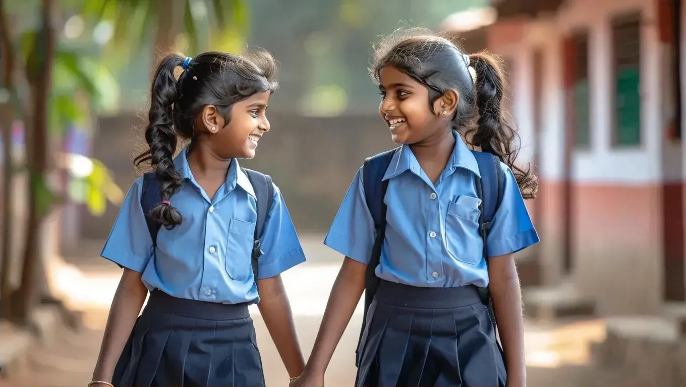 Create vivid AI animations of twins Sadha and Saha in school uniforms—blue shirts, black skirts—chatting joyfully while walking home. Generate lifelike sibling bonding scenes with detailed facial expressions, dynamic poses, and authentic school attire using AI character design tools. Perfect for storytelling, animations, and visualizing childhood memories through AI-powered creativity.