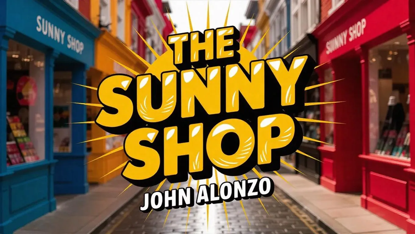 "John Alonzo's 'The Sunny Shop' single cover blends vibrant, sun-drenched visuals with retro-modern AI art, showcasing catchy instrumental beats. Eye-catching typography highlights the title and artist name, optimized for social shares. Uplifting, whimsical aesthetics mirror the track's sunny vibe, designed to trend on music platforms and Instagram Reels. Perfect for viral engagement and streaming playlists."