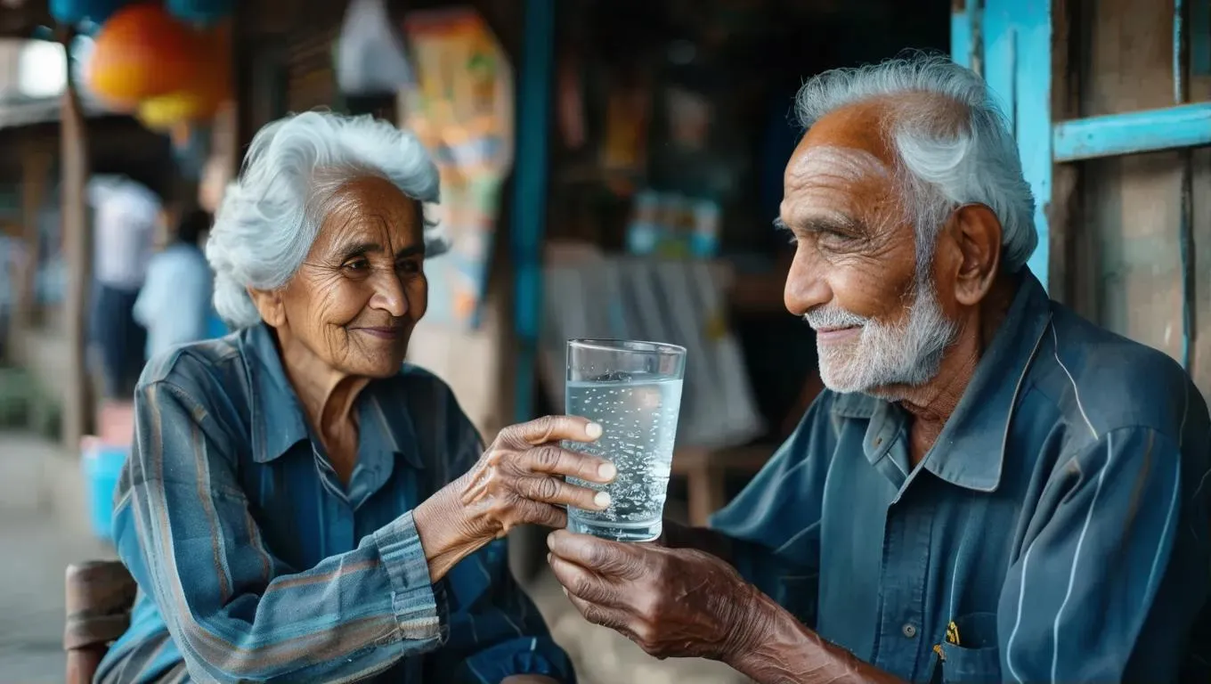 Generate heartwarming scenes of kindness with vivago.ai. Transform text prompts into AI visuals, like a man offering water to an elderly person, using professional-grade image generation tools for emotionally resonant, high-quality creative content.