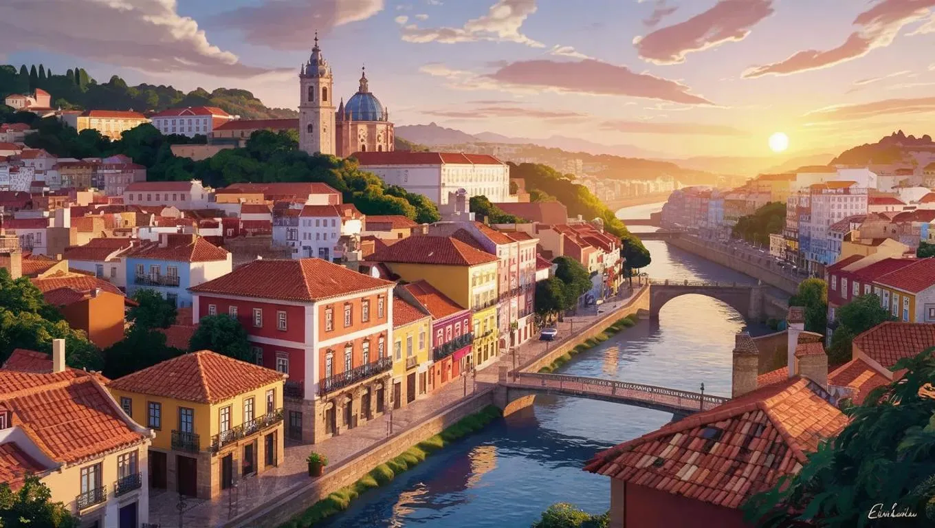 Generate a stunning AI-powered 3D animation of Porto's sunset cityscape blending Pixar charm and Anime flair. Explore Douro River reflections, Dom Luís I Bridge, and Dune-inspired red rooftops through Disney-style vibrancy. Perfect for creating whimsical Portuguese landscapes with cobblestone streets and golden-hour panoramas using AI image generation tools.