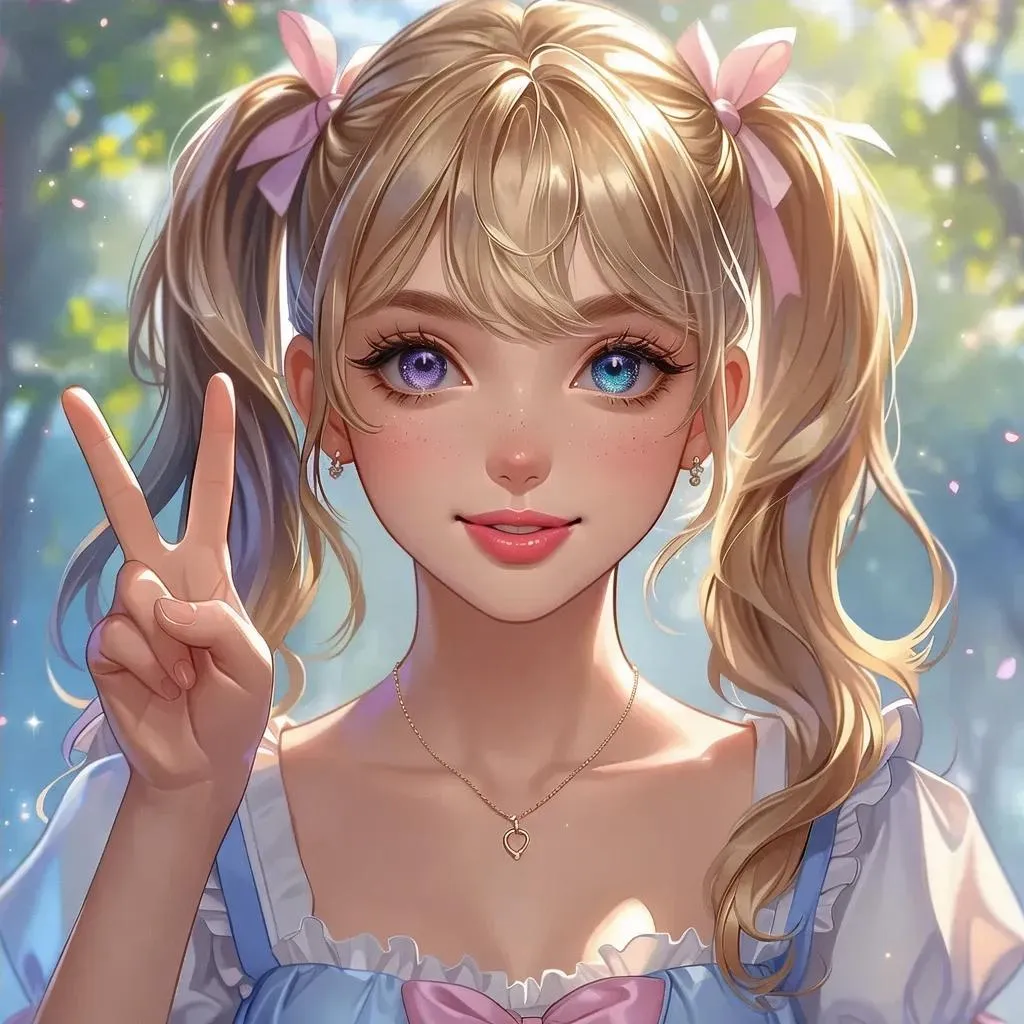 Create vibrant anime-style characters with AI magic! Generate cute magical girls in Lolita dresses featuring rainbow curly hair, elf ears, and glowing eyes. Perfect your dream character's details - from knee-high boots to braided bangs. Vivago.ai transforms text prompts into expressive anime art with professional-grade editing tools for shiny hair, freckles, and magical costume effects.