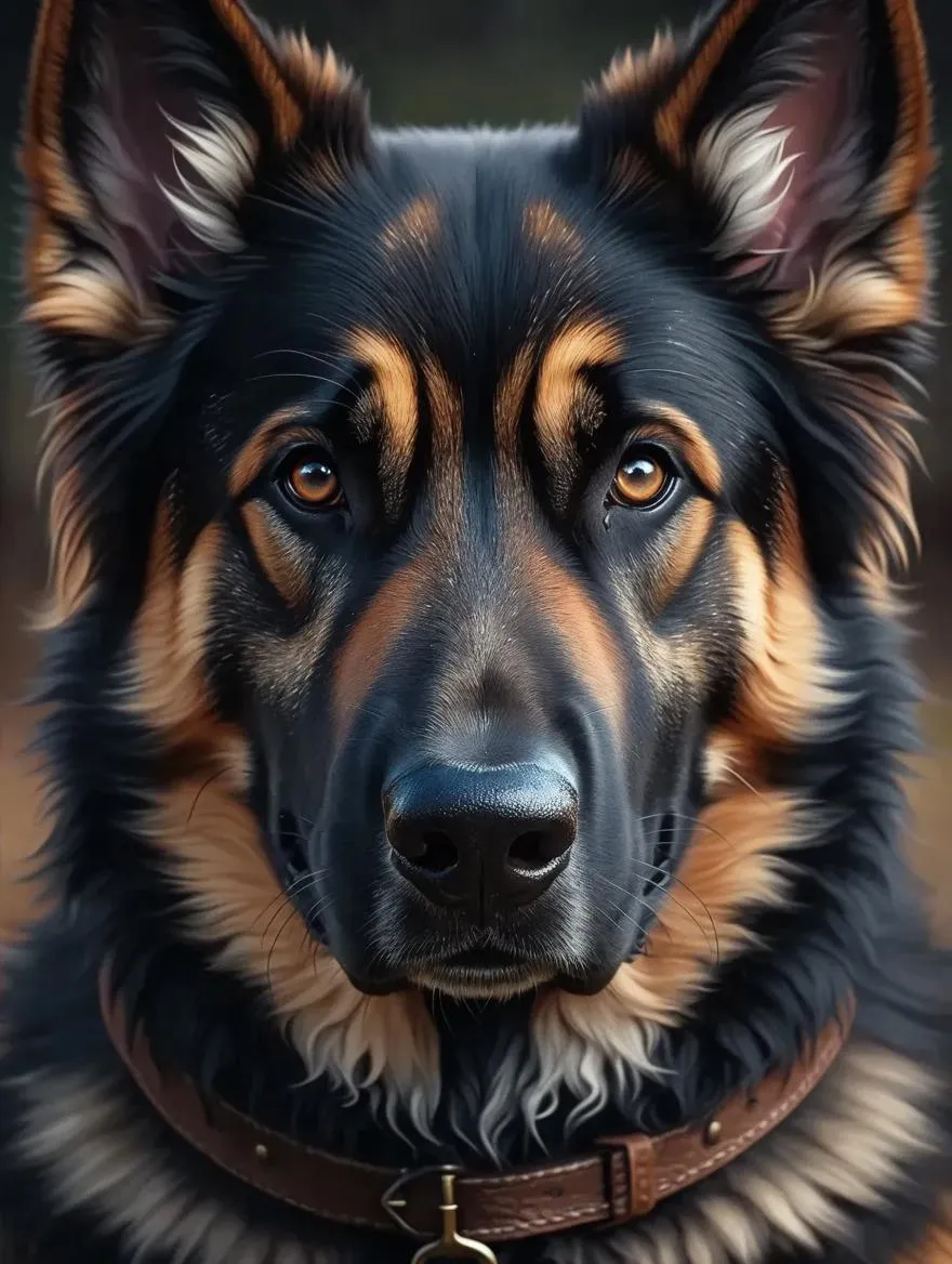 Generate a hyper-realistic close-up of a Corsican Shepherd dog with glossy black fur using advanced AI image generation. Transform text prompts into lifelike visuals with Vivago.ai's professional tools for stunning, high-definition pet portraits and realistic animal photography effects.