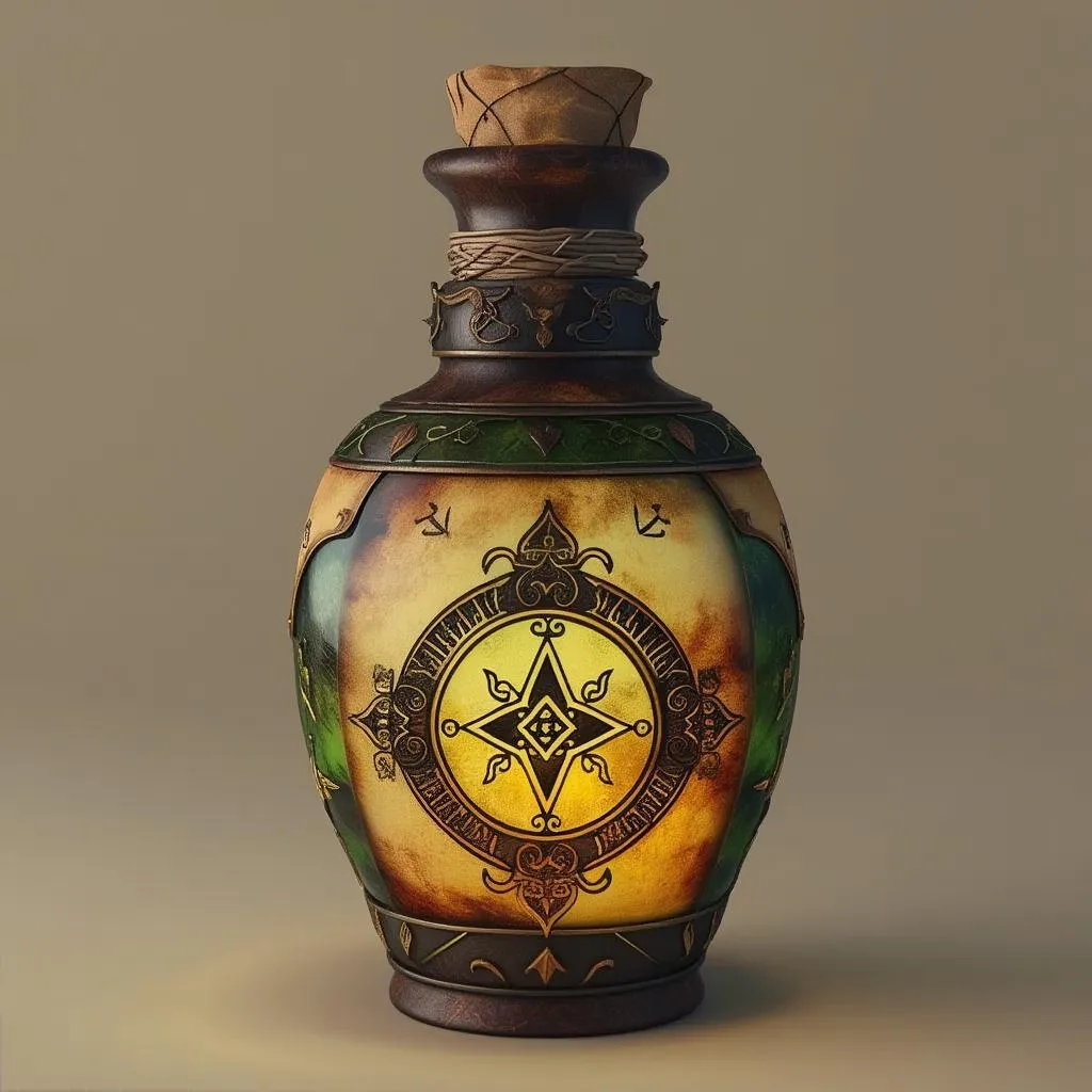 Create hyper-realistic, high-quality AI images of an ancient magical potion bottle isolated on a light background. Features antique brown, parchment yellow, and forest green hues with mystical symbols. Ideal for fantasy themes, product visuals, or mystical art. Craft precise AI-generated designs with VIVAGO.AI's advanced tools.