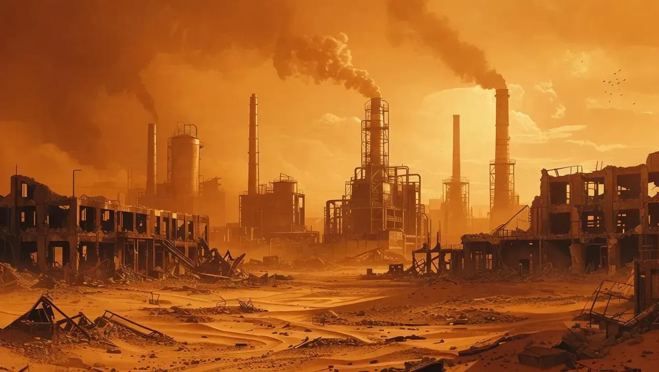 Discover the Metal Desert: AI-powered creative tool transforms text into haunting visuals of post-industrial decay—abandoned factories, smoky air, dilapidated warehouses. Generate dystopian cityscapes with vivago.ai's AI effects for professional-grade industrial wasteland imagery.