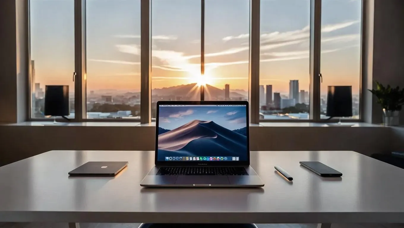 Create professional AI-generated MacBook photos with sunrise backdrops using Vivago.ai. Transform text prompts into stunning visuals of sleek laptops on modern desks against panoramic sunrise windows. Ideal for marketing, portfolios, and creative projects with AI-powered precision for vibrant lighting, detailed tech setups, and captivating workspace aesthetics.