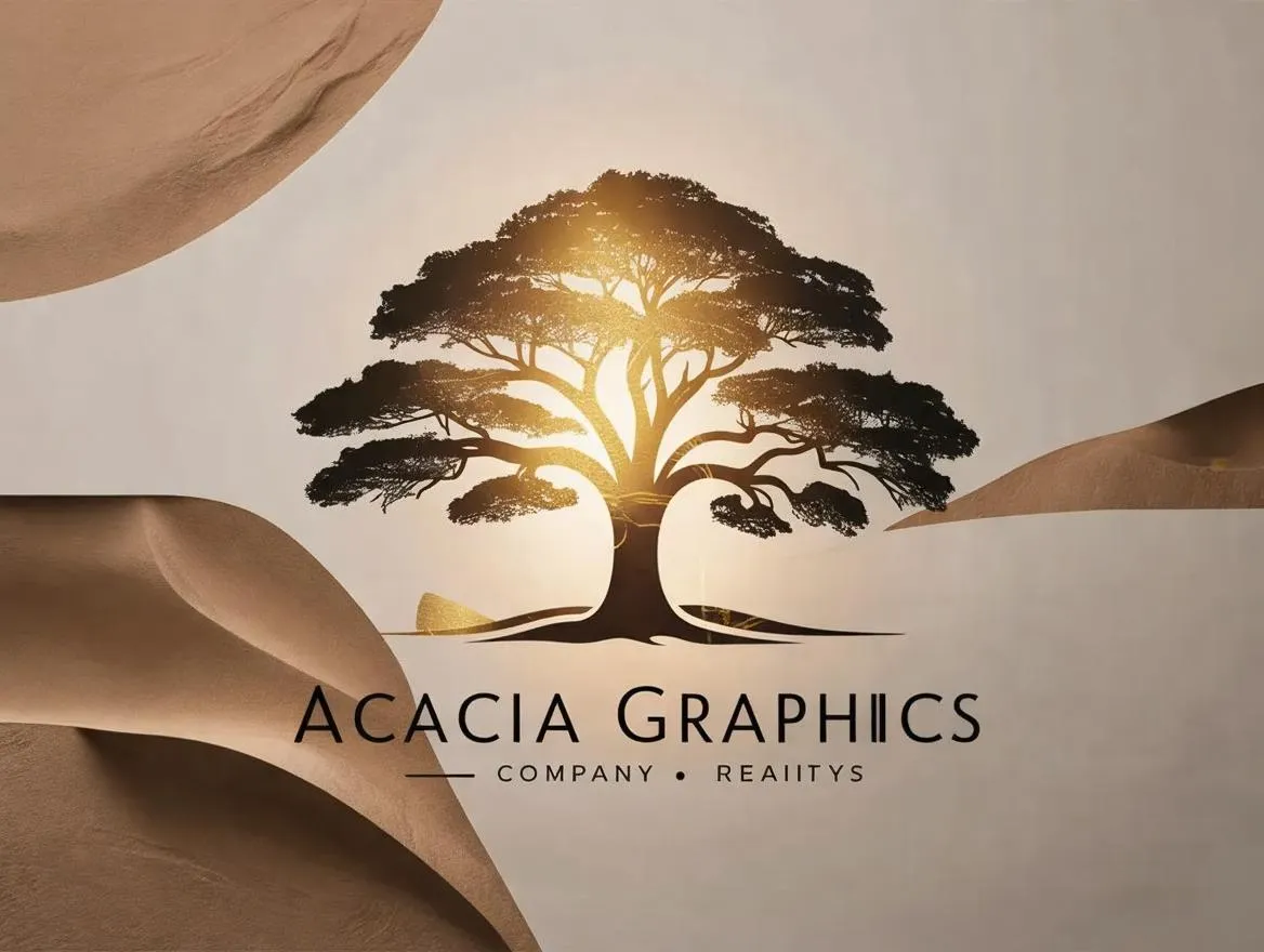 Design a minimalist Acacia Graphics logo with an AI-generated Acacia tree silhouette. Transform text prompts into sleek, nature-inspired branding assets effortlessly using Vivago.ai's creative tools for professional visual identity and versatile applications.