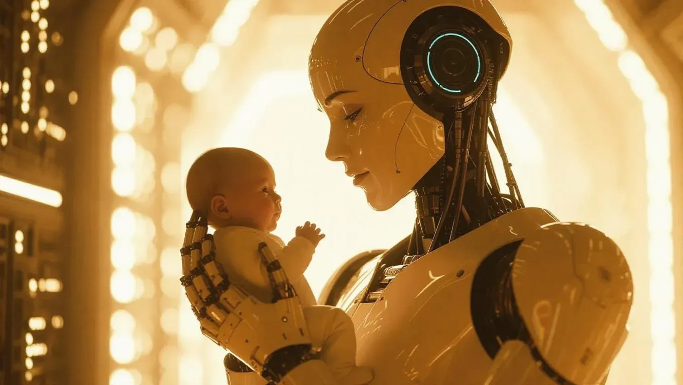 Create AI-generated art of a robot having a baby with vivago.ai. Explore futuristic sci-fi concepts using advanced AI image generation and effects for professional, imaginative visuals. Transform text prompts into stunning robot baby designs effortlessly.