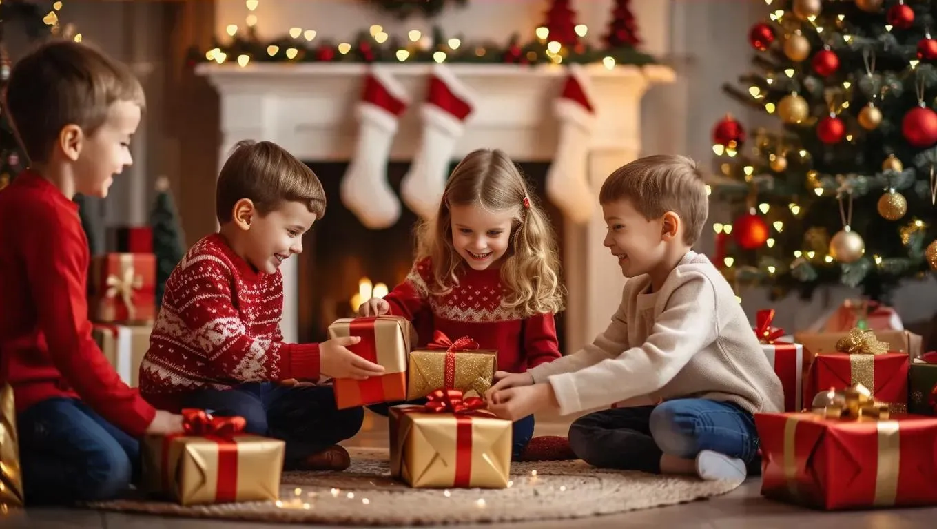 Create heartwarming AI-generated visuals of children exchanging Christmas gifts. Perfect for festive content, holiday cards, and social media. Transform prompts into joyful scenes with vivago.ai’s AI tools, capturing the magic of Christmas through professional-grade images and videos instantly.
