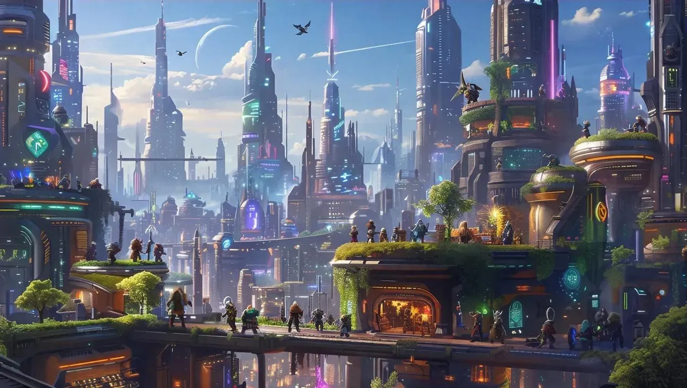 Explore a vibrant cyberpunk metropolis where dwarves, humans, and elves coexist. Neon-lit skyscrapers, high-tech dwarf workshops, and elves' lush rooftop gardens blend advanced technology with fantasy. Experience captivating AI-generated visuals of this futuristic cityscape, teeming with diverse inhabitants and an otherworldly atmosphere. Create your own immersive cyberpunk-fusion world with cutting-edge AI tools.