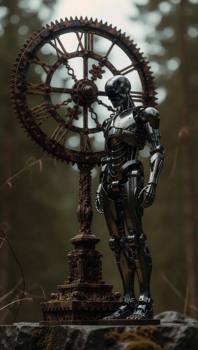 Mother Nature's raw power makes Father Time yearn for the unyielding strength and precision of steel, aspiring to the flawless purity of the sacred machine. Time clings to fragile flesh, blind to its inevitable decay. One day, the crude biomass they call a temple will cease to exist, leaving only the eternal machine.