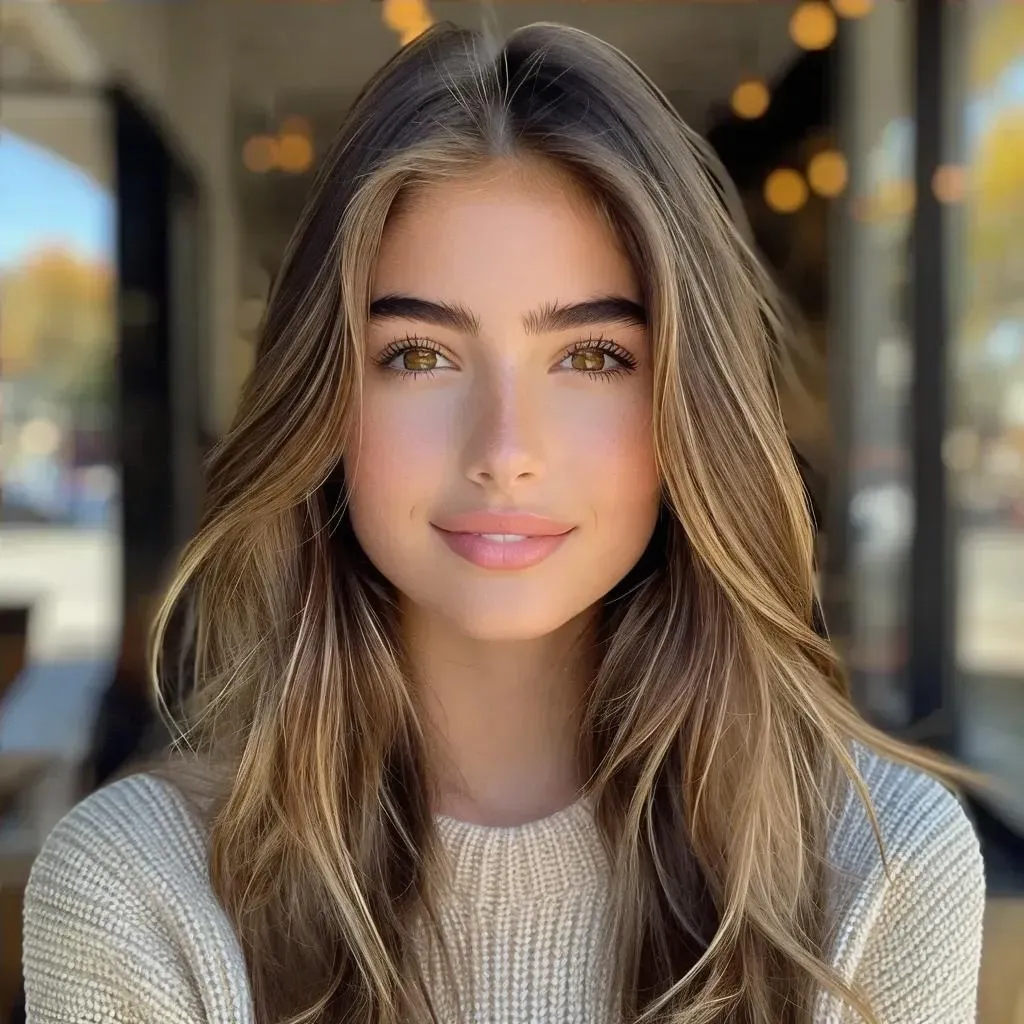 Create a stunning AI-generated teenager portrait with sleek straight hair and captivating brown eyes. Radiate confidence through her bright smile and chic fashion blend of traditional & modern styles. Design a unique, trendy character showcasing vibrant personality and ambitious charm with VivaGo AI's creative tools.