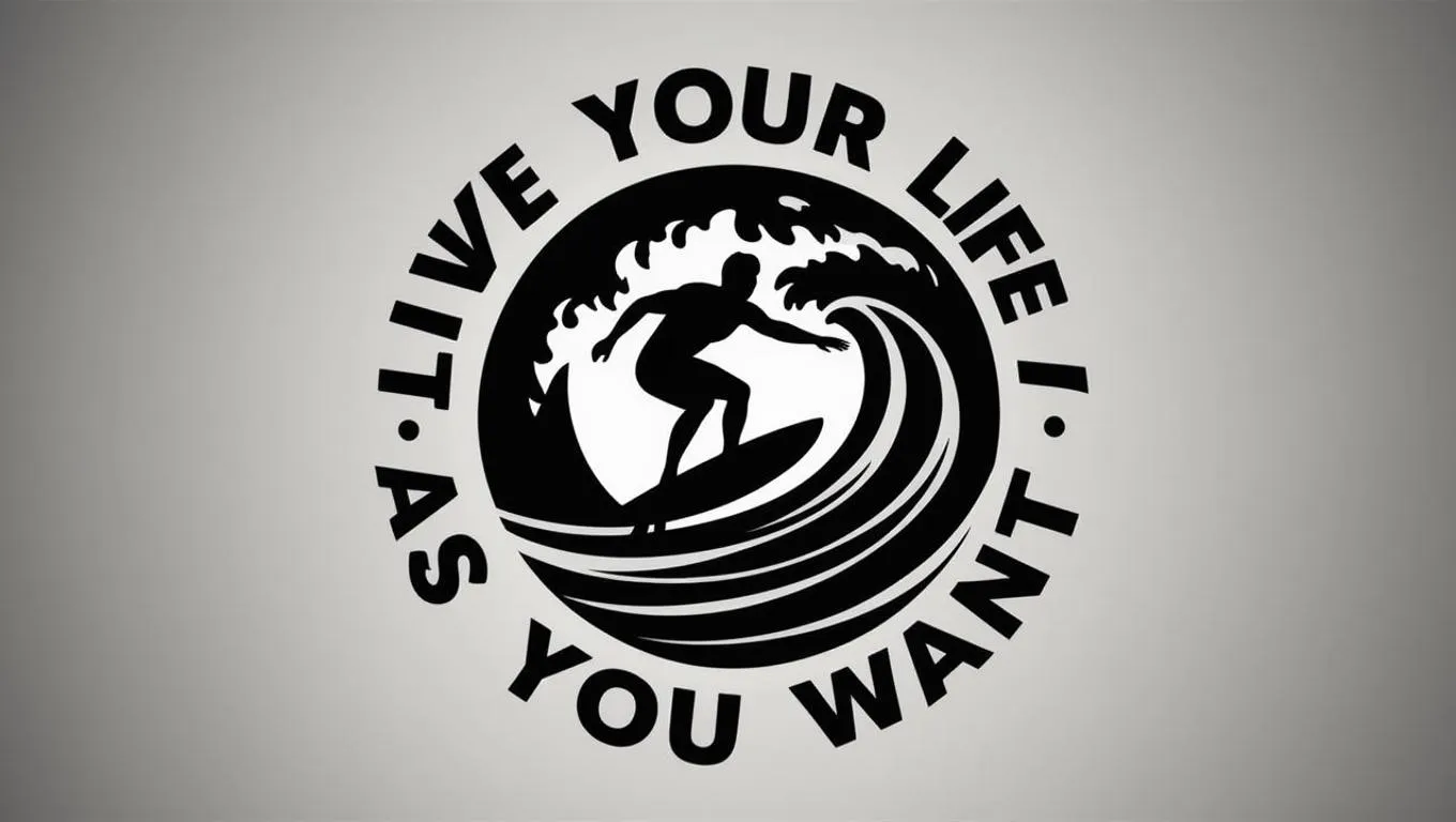 Create a custom AI-generated circular t-shirt logo with a bold black surfing silhouette and motivational "Live your life as you want" text. Perfect for surf-inspired apparel, this dynamic design combines AI artistry with wearable creativity for standout casual fashion. Explore vivago.ai's tools to craft personalized, professional-grade graphic designs effortlessly.