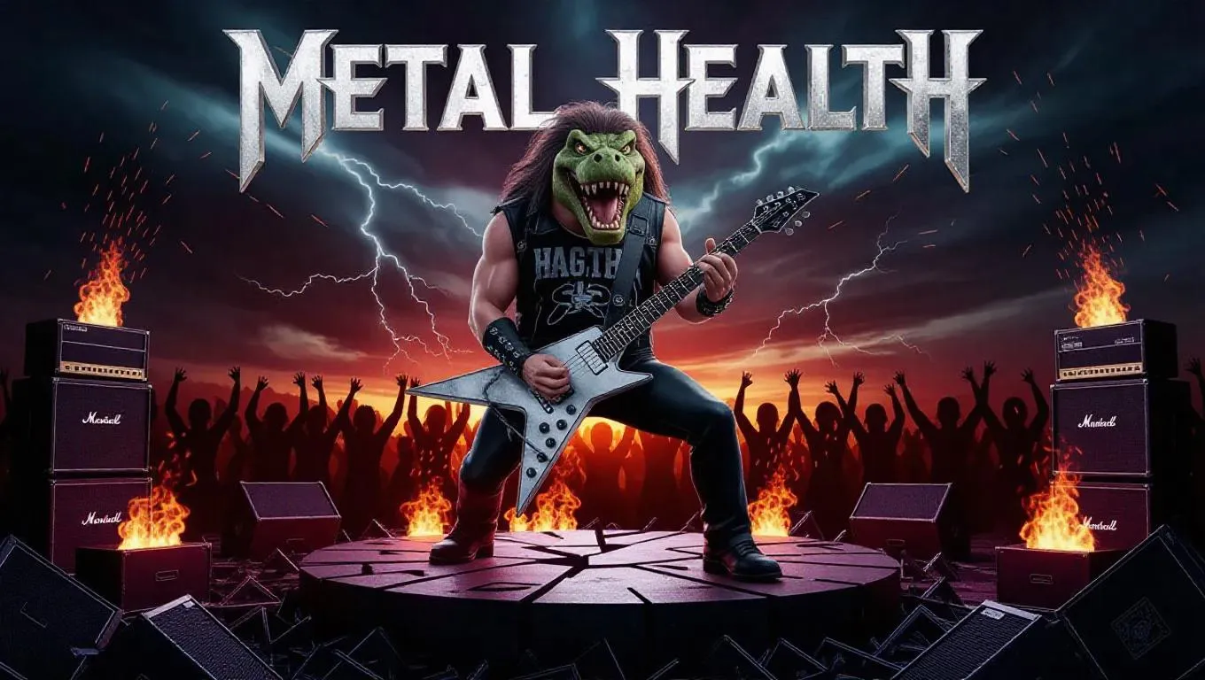 Unleash AI-generated heavy metal chaos with this hyper-realistic CGI scene: a snarling rocker wields a crackling electric guitar atop shattered stages, surrounded by burning amps, twisted metal, and pyrotechnics under stormy skies. Rebellious fans headbang in motion-blurred unity, captured in grungy textures and vivid lighting. Experience vivago.ai's AI image generation for raw, defiant rock energy—crafted to amplify your wildest creative visions.