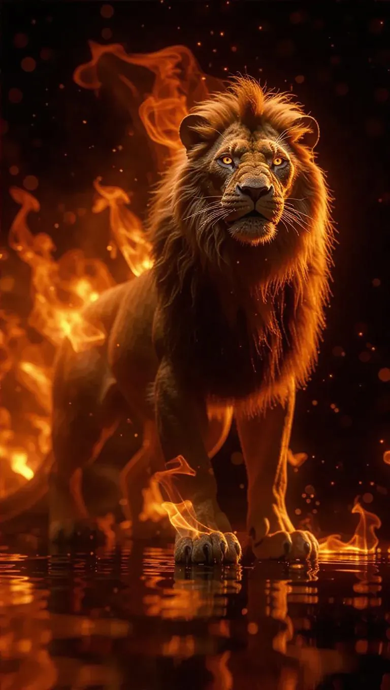 Vivago.ai crafts AI-generated images blending futurism and realism. This medium-shot scene features an anthropomorphic Leo with a metallic flame cape flowing in Escher-inspired 3D space. Dynamic sparks and warm light enhance the high-angle, three-quarter view, delivering professional-grade AI creativity for stunning visual content.