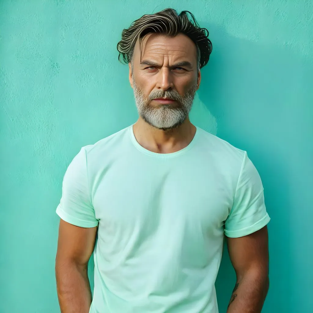 Create AI-generated half-length portraits with crisp white T-shirts against refreshing mint green backgrounds. Enhance casual vibes through clean visual contrast and pure textures using professional editing tools. Perfect for relaxed aesthetics and striking color interplay in AI-powered imagery.