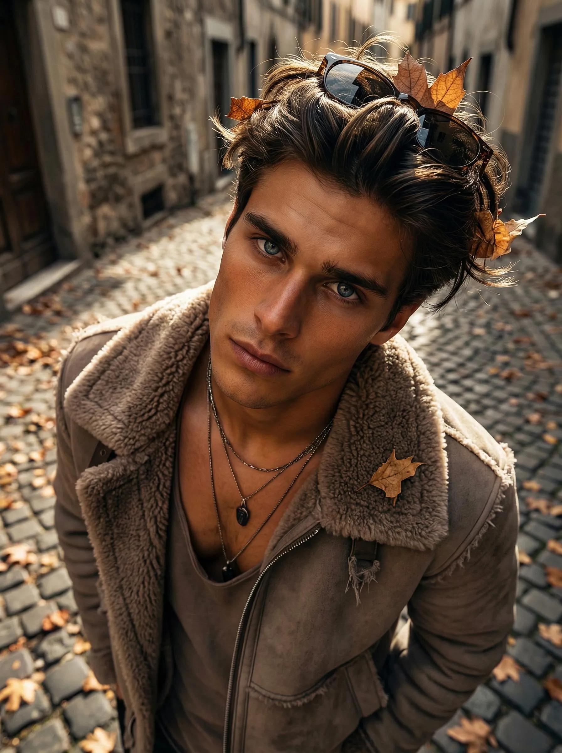 Generate photorealistic high-fashion portraits from uploaded images with Vivago AI. Create extreme high-angle shots featuring shearling jackets, autumn Italian streets, and dramatic chiaroscuro lighting. Achieve cinematic 8K images with intense moods and avant-garde styling. Transform prompts into ultra-realistic editorial visuals effortlessly.