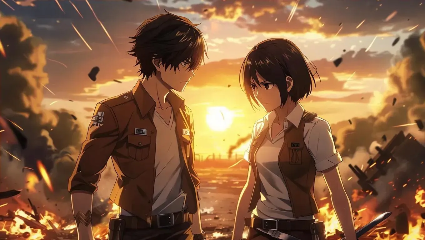 Craft intense Attack on Titan scenes with AI-generated battle visuals of Eren and Mikasa. vivago.ai delivers dynamic character details, dramatic lighting, and professional-grade effects for striking anime fan art or action-packed content creation.