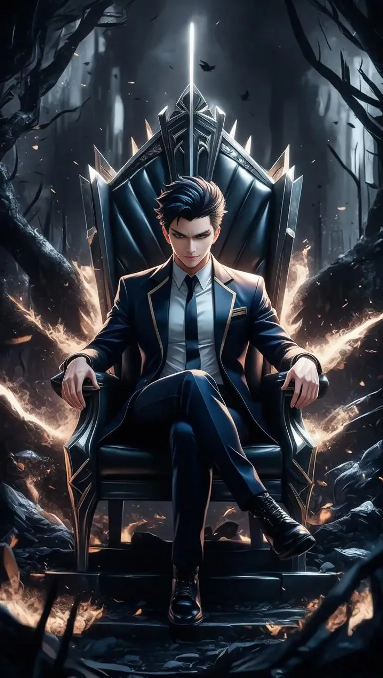 Generate AI anime art with a modern twist. Transform text into a striking anime character—a sleek, cool-looking man seated on a royal throne, set against a dark, wild backdrop. Achieve a menacing killer aura using Vivago.ai's AI image tools for professional, edgy anime visuals. Ideal for dynamic, high-quality anime-inspired creations.