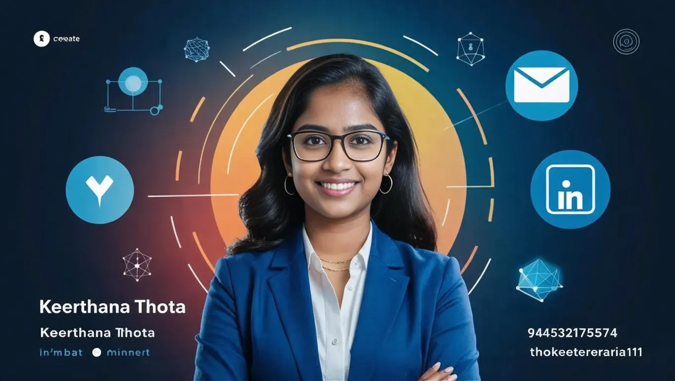 Professional LinkedIn Banner Design for Keerthana Thota | Data Scientist & ML/Data Engineering Expert | AI-Generated Customizable Template with Contact Integration | Elevate Your Personal Branding | Machine Learning & Data Visualization Themes | Optimized Profile Aesthetics | Powered by Vivago.ai's Creative AI Tools.