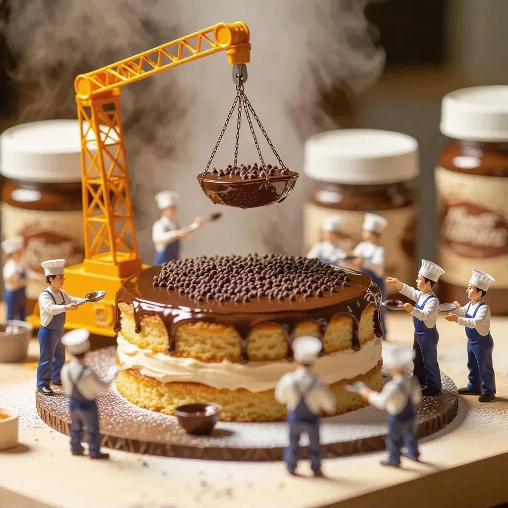 Transform text into vivid AI art! Experience miniature chefs crafting a giant peanut butter cake with chocolate frosting. AI-generated imagery captures tiny cranes lifting sponge layers and sprinkling decorations. Use Vivago.ai's tools to create this whimsical bakery scene effortlessly. Ideal for edible fantasies and unique visual concepts!