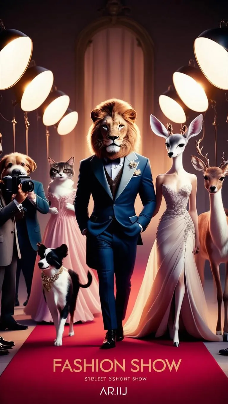 Explore AI-generated animal characters in human roles with vivago.ai. Transform text prompts into whimsical animal fashion shows and red carpet events. Create vibrant anthropomorphic designs using advanced AI image generation and editing tools for creative storytelling. Unleash imaginative cross-species narratives effortlessly.